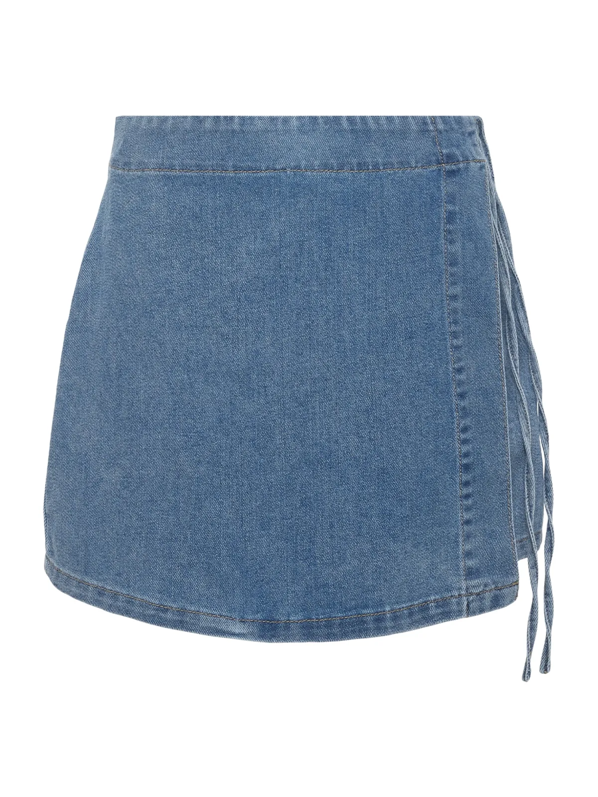 Design: Om te knopen/binden, Achterzak; Materiaal: Denim; Motief: Effen; Rokvorm: A-lijn rok; Details: Wikkel design; Extra's: Gewassen effect, Vaste grip; Lengte: Kort/mini; Pasvorm: Normale pasvorm