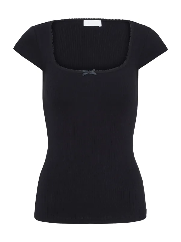 Design: Gevoerde zoom/rand; Materiaal: Jersey; Halstype: Carréhals; Motief: Effen; Details: Kant; Extra's: Applicaties, Op staal naden, Buigzame grip; Pasvorm: Slanke pasvorm; Armlengte: Kwartmouw; Lengte: Normale lengte