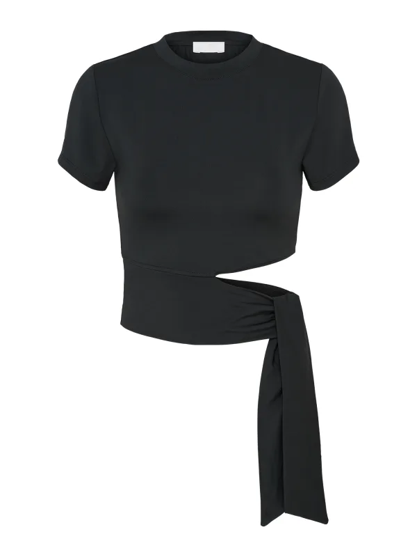Design: Gevoerde zoom/rand, Om te knopen/binden, Nektape; Materiaal: Gerecycled materiaal; Halstype: Ronde hals; Motief: Effen; Details: Cut-outs; Extra's: Op staal naden, Gladde stof; Pasvorm: Slanke pasvorm; Armlengte: Kwartmouw; Lengte: Korte pasvorm