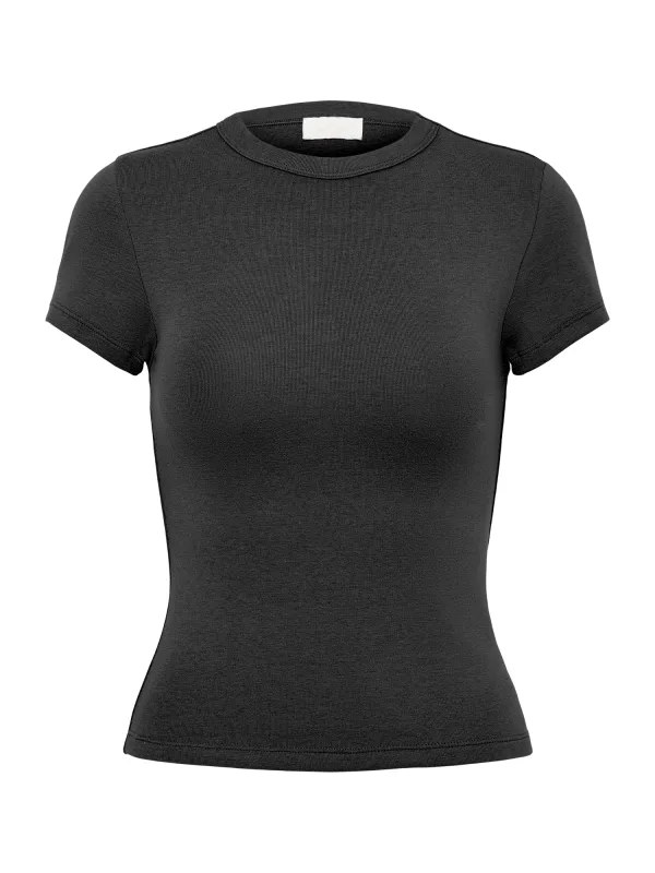 Design: Gevoerde zoom/rand, Rechte zoom, Ingelegde kraag; Materiaal: Jersey; Halstype: Ronde hals; Motief: Effen; Extra's: Op staal naden, Voelt zacht aan; Pasvorm: Slanke pasvorm; Armlengte: Kwartmouw; Lengte: Normale lengte