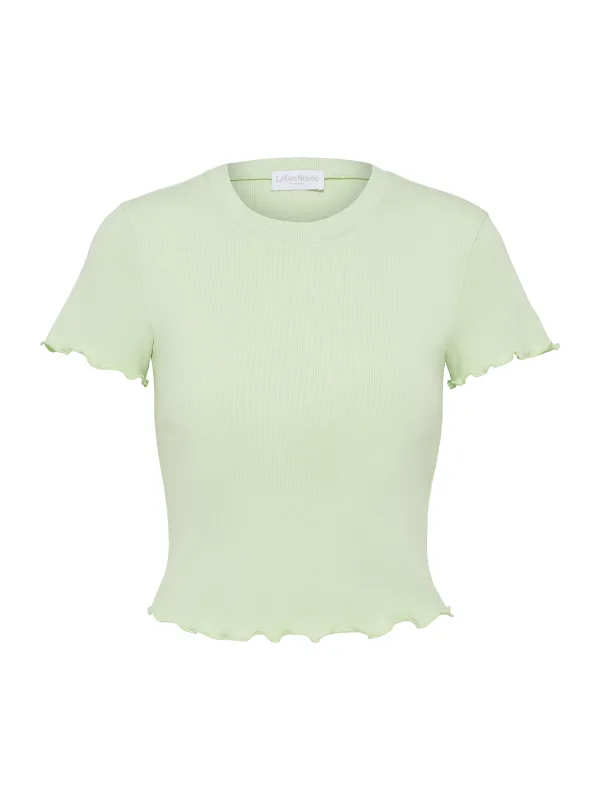 Design: Geribbelde kraag, Gerolde boord, Nektape; Materiaal: Jersey; Halstype: Ronde hals; Motief: Effen; Extra's: Op staal naden, Voelt zacht aan; Pasvorm: Slanke pasvorm; Armlengte: Kwartmouw; Lengte: Korte pasvorm