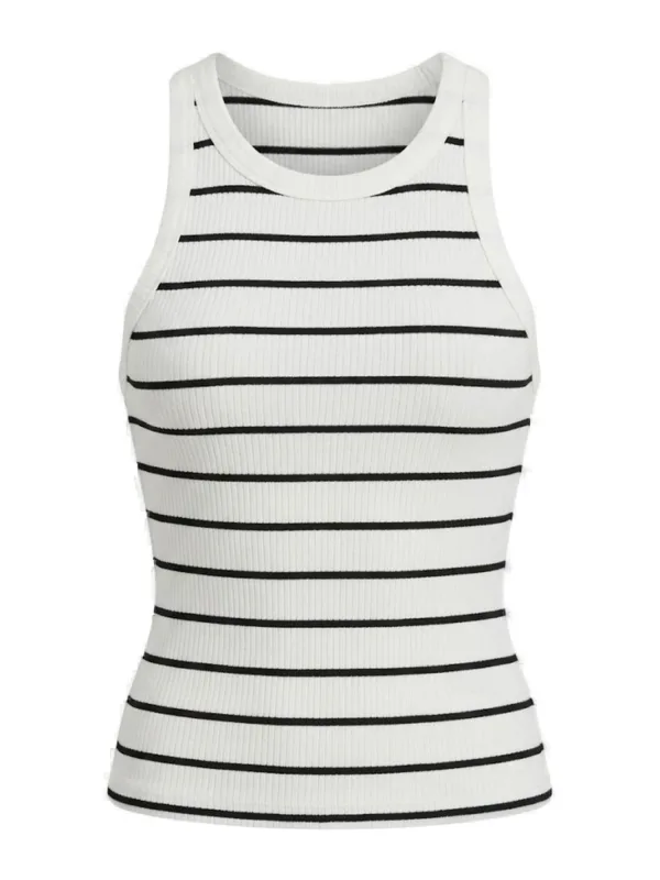 Design: Gevoerde zoom/rand, Ingelegde kraag, Nektape; Materiaal: Jersey; Halstype: Ronde hals; Motief: Gestreept; Soort bandjes: Normale bandjes; Extra's: Op staal naden, Voelt zacht aan; Pasvorm: Slanke pasvorm; Armlengte: Mouwloos; Lengte: Normale lengte