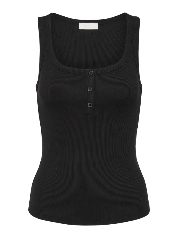 Design: Gevoerde zoom/rand, Ingelegde kraag; Materiaal: Jersey; Halstype: Henley hals; Motief: Effen; Soort bandjes: Brede bandjes; Extra's: Op staal naden, Voelt zacht aan; Pasvorm: Slanke pasvorm; Armlengte: Mouwloos; Lengte: Normale lengte