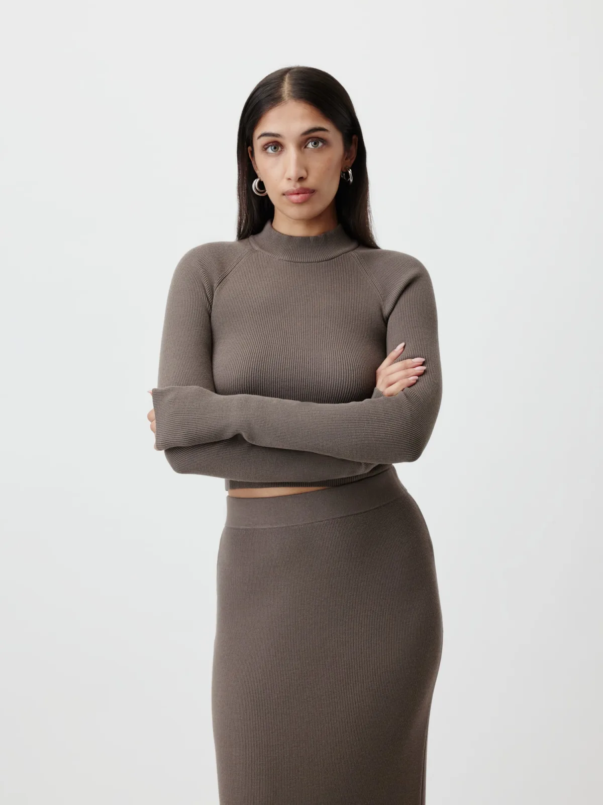 Design: Geribbelde kraag, Raglanmouwen, Geribd ceintuurtje; Materiaal: Knitwear; Halstype: Opstaande kraag; Motief: Effen; Extra's: Met textuur, Voelt zacht aan; Pasvorm: Aansluitende pasvorm; Armlengte: Lange mouw; Lengte: Korte pasvorm