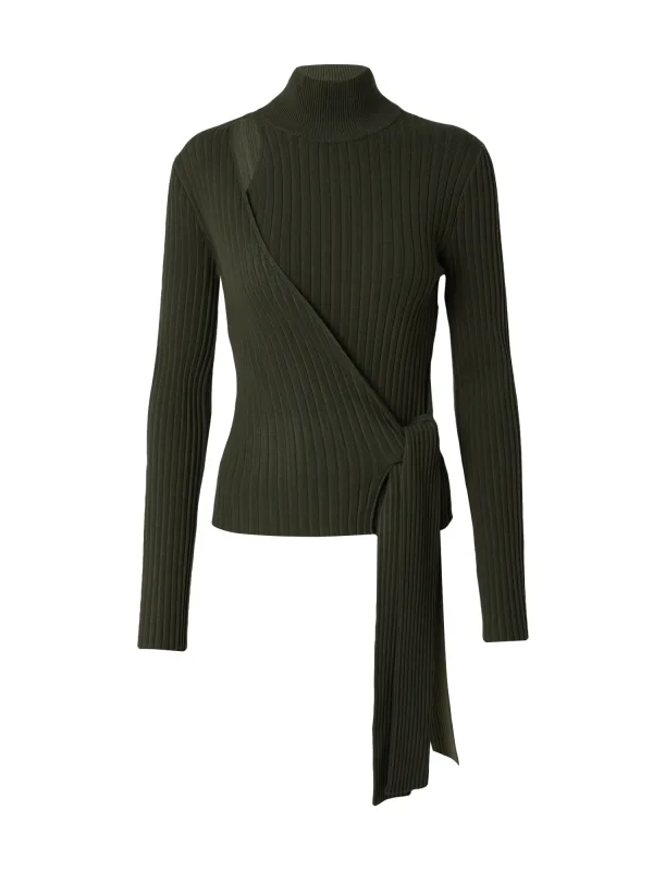 Design: Geribbeld gebreid, Om te knopen/binden; Materiaal: Knitwear; Halstype: Opstaande kraag; Motief: Effen; Details: Cut-outs, Wikkel design; Extra's: Met textuur, Voelt zacht aan; Pasvorm: Slanke pasvorm; Armlengte: Lange mouw; Lengte: Normale lengte