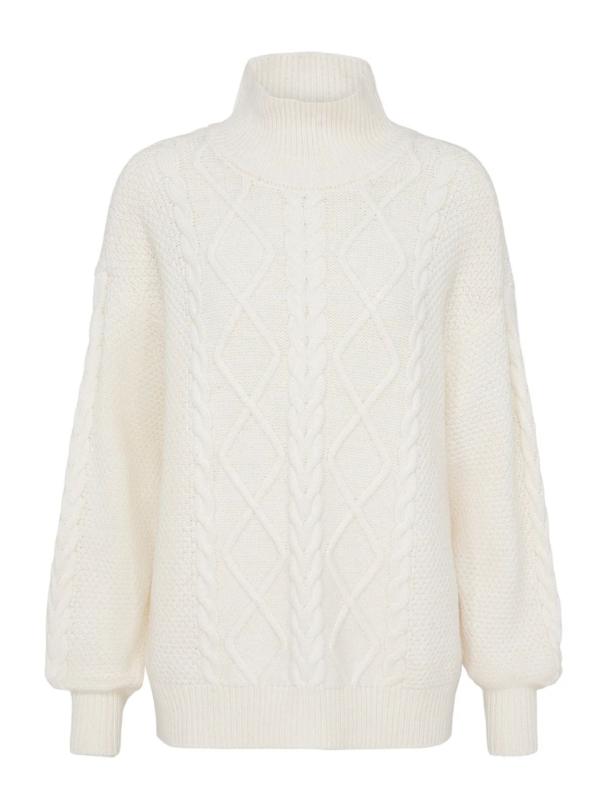 Design: Geribbelde kraag, Geribd ceintuurtje, Vlecht brei; Materiaal: Knitwear; Halstype: Opstaande kraag; Motief: Effen; Extra's: Fully fashioned, Buigzame grip; Pasvorm: Losse pasvorm; Armlengte: Lange mouw; Lengte: Normale lengte