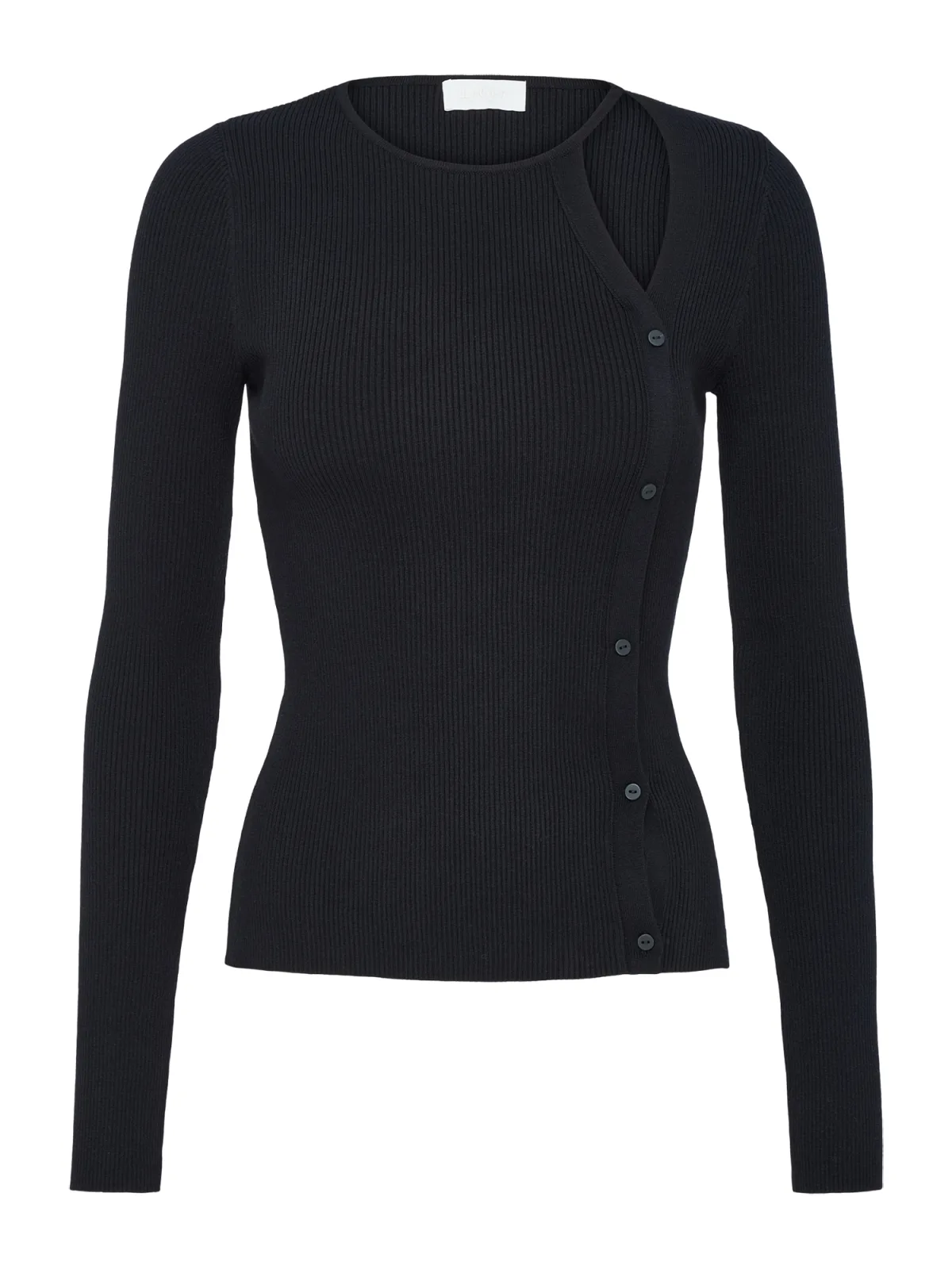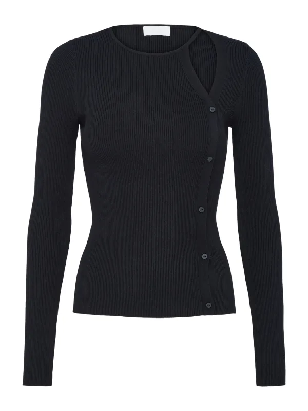 Design: Geribbelde kraag, Rechte zoom, Geribbeld gebreid; Materiaal: Knitwear; Halstype: Ronde hals; Motief: Effen; Details: Cut-outs; Extra's: Fully fashioned, Met textuur; Pasvorm: Aansluitende pasvorm; Armlengte: Lange mouw; Lengte: Normale lengte