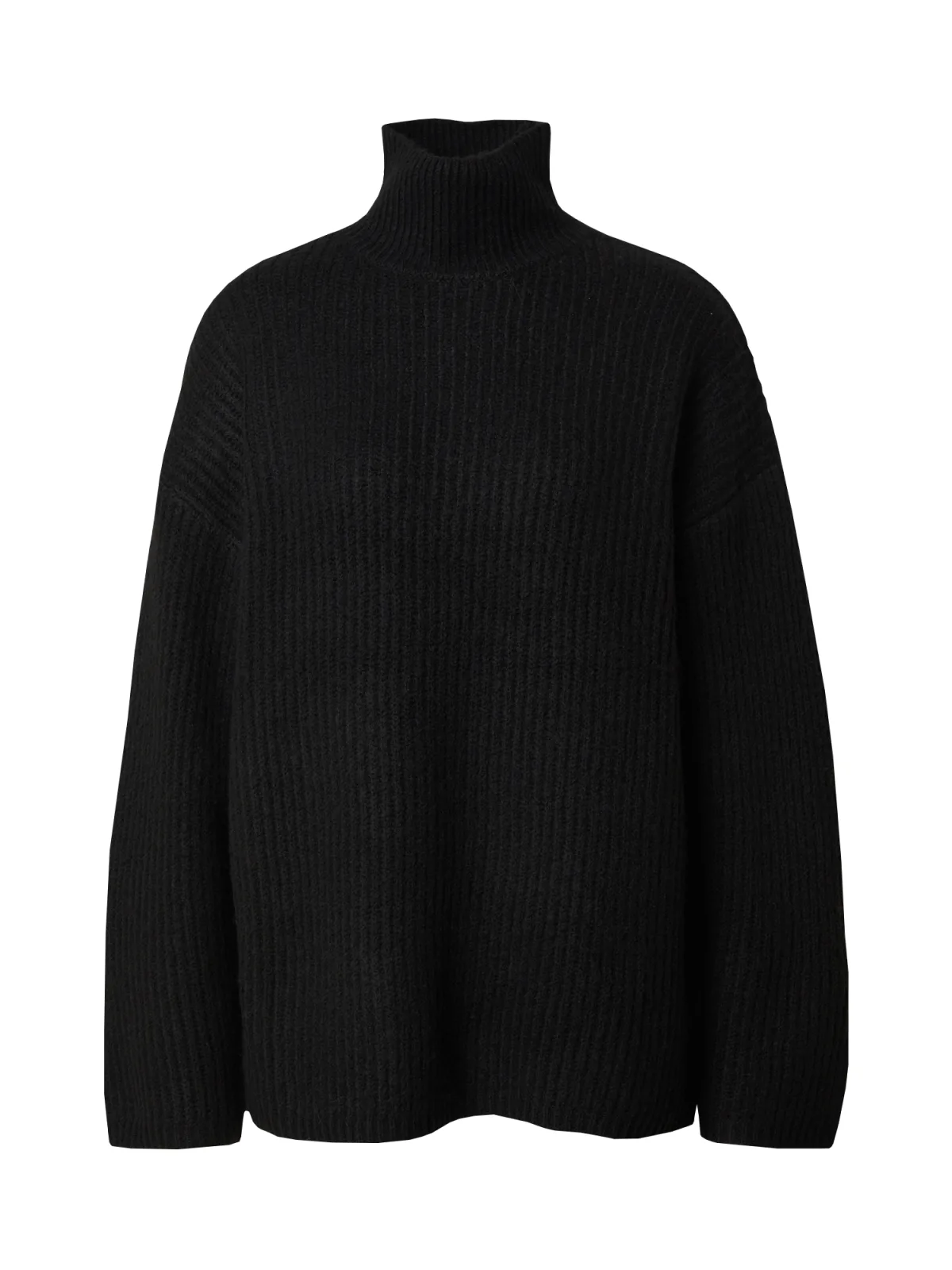 Design: Rechte zoom, Geribbeld gebreid, Overcut schouder; Materiaal: Knitwear; Halstype: Opstaande kraag; Motief: Effen; Extra's: Fully fashioned, Met textuur; Pasvorm: Losse pasvorm; Armlengte: Lange mouw; Lengte: Normale lengte