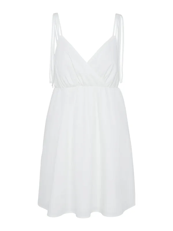 Design: Gevoerde zoom/rand, Rechte zoom, Diepe snit/decolleté, Wikkel-look; Materiaal: Katoen; Halstype: V-hals; Motief: Effen; Soort bandjes: Spaghettibandjes; Details: Gedrapeerd; Extra's: Op staal naden, Lichte stof, Voelt zacht aan; Lengte: Kort/mini; Snit: Getailleerd; Pasvorm: Normale pasvorm; Armlengte: Mouwloos