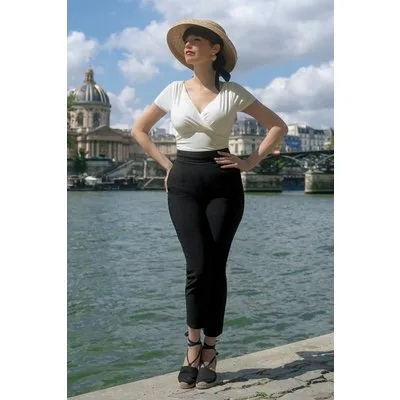 ‘’Travel is the gorgeous feeling of entering the unknown.’’ Dit seizoen hebben onze eigen in-house ontwerpers zich laten inspireren door de wereldse vrouw die straalt, waar ze ook gaat of staat. Lena Lynn is super veelzijdig, sluit perfect aan zonder af te tekenen en is uitermate comfortabel dankzij de gladde en stevige, high quality zwarte stof voorzien van een hele lichte stretch. ''Wanderlust in every step!'' * Hoog taille model * Geplooide tailleband * It has pockets! * Decoratieve paspelzakken * Aansluitende 7/8 pijpen * Blinde rits achterzijde * Gorgeous influencer Miss Alba Banana is 1,75 m: haar hoed en accessoires zijn haar eigen vintage treasures