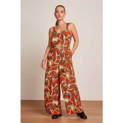 Met deze Lenny jumpsuit ben jij helemaal klaar voor het komende seizoen! Een speelse jumpsuit voorzien van een strikband in de taille voor een flirty en vrouwelijk silhouet en lange zwierige wijde pijpen. Uitgevoerd in een soepele en luchtige, EcoVero viscose (stretcht niet!) voorzien van een multicolour retro print die heerlijk draagt. Breng je dagen door met Lenny! * V-hals * V-rug * Mouwloze top met bredere schouderbandjes * Afneembare strikband voor een extra ‘snatched’ taille * Zijwaartse steekzakken * Blinde rits met haaksluiting achterzijde * Lange wijde pijpen