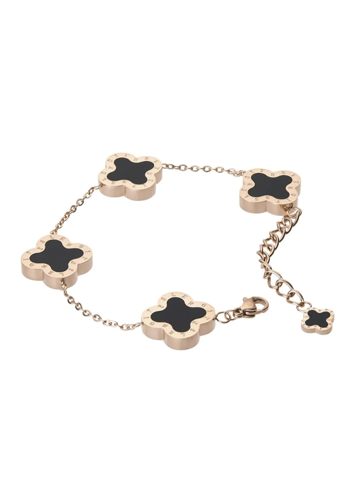 Lenoites Armband ‘Four-leaf Clover 18’ rose-goud / zwart Prijzen
