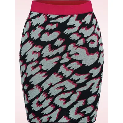 ''Find your wild side!'' Deze Leo gebreide rok is comfy én stylish! Ze is namelijk uitgevoerd in een stretchy en zachte, fijngebreide zwarte 100% viscose, voorzien van een eye-catching leopard patroon in licht blauw en fuchsia roze. * Hoge taille * Elastische tailleband * Geen rits of knopen * Valt bij een lengte van 1,70 m boven de knie * Maak je look compleet en combineer haar met de bijpassende Leo gebreide top