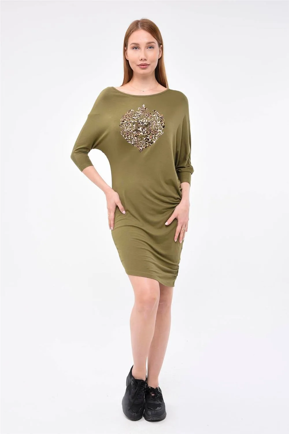 Design: Gevoerde zoom/rand; Materiaal: Viscose; Halstype: Ronde hals; Motief: Motiefprint; Details: Gedrapeerd; Extra's: Op staal naden; Lengte: Kort/mini; Snit: Recht; Pasvorm: Slanke pasvorm; Armlengte: Driekwart mouw