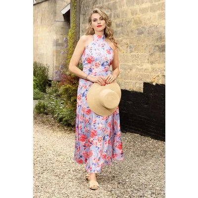 Leonie Floral halter maxi jurk in luchtblauw