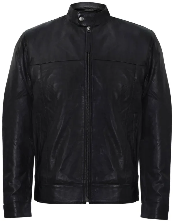 Dit eigentijdse jack heeft een verfijnde mandarijnkraagafwerking, is kort van lengte en heeft een stijlvol bikersilhouet. Gemaakt van weelderig nappaleer, met een YKK-ritssluiting aan de voorkant en manchetten met knopen voor een meer persoonlijke pasvorm. Dit bikerjack straalt stijl uit en is meer dan een essentieel modeaccessoire voor iedere man.