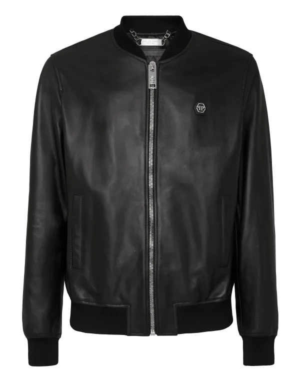 Wij adviseren een eigentijdse stijl met dit zachte nappa bomberjack. Bekijk de details. Nappa PP Hexagon op een saffiaanleren patch opgenaaid op de linkerborst Ritssluiting Twee steekzakken met verborgen drukknoop Ribzomen Binnenvoering