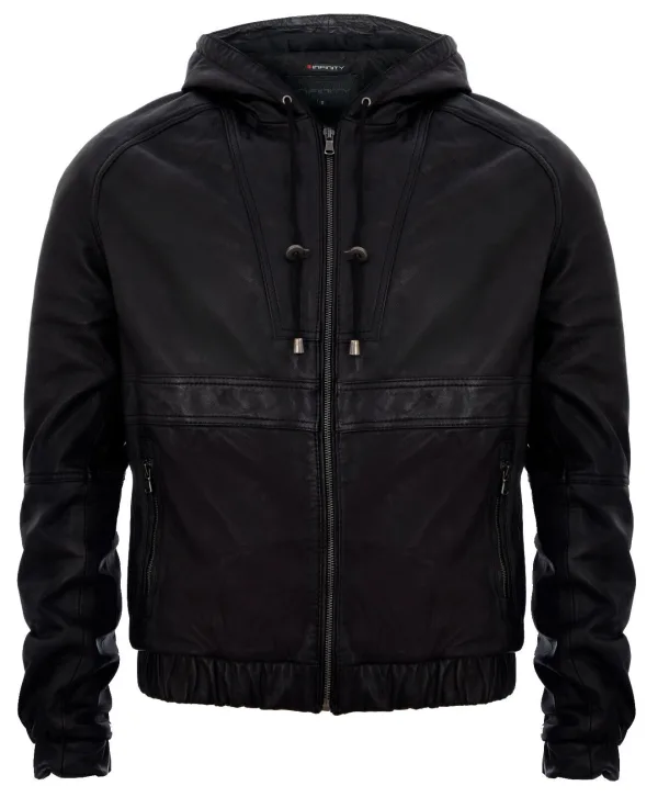 - Bij secretsales.nl kun je Leren bomber-bikerjack met rits en capuchon kopen voor slechts €171,99