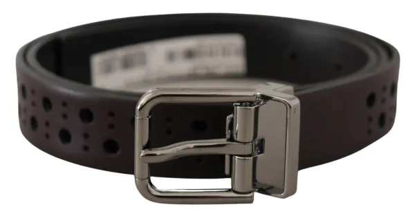 Verhoog je stijl, definieer je silhouet en trek de aandacht. Deze Dolce & Gabbana riem, vervaardigd uit hoogwaardig bruin leer, voegt een vleugje Italiaanse luxe toe aan elke outfit. Het verfijnde geperforeerde ontwerp biedt een uniek textuurelement, waardoor je opvalt in de menigte. De klassieke zilveren gesp zorgt voor een veilige en gepolijste afwerking. Geniet van duurzame, onderhoudsarme draagbaarheid met dit tijdloze accessoire. Perfect om een verfijnde touch toe te voegen aan zowel casual als formele ensembles, is deze riem een investering in blijvende stijl. Een veelzijdige basis voor de garderobe van de moderne man.