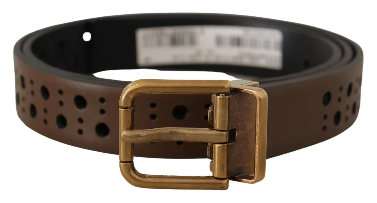 Verhoog, definieer en verfijn je look. Deze Dolce & Gabbana riem voegt een vleugje luxe toe aan elke outfit. Het leer van hoge kwaliteit zorgt voor blijvende elegantie, terwijl de geperforeerde details een onderscheidend randje toevoegen. De goudkleurige gesp biedt een veilige sluiting en verhoogt de algehele esthetiek. Geniet van duurzame, onderhoudsarme draagcomfort met deze eenvoudig te onderhouden constructie. Perfect om een verfijnde touch toe te voegen aan zowel casual als formele outfits, is deze riem een veelzijdige aanvulling op elke garderobe. Ervaar de perfecte mix van stijl en kwaliteit.