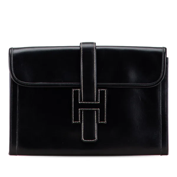 Draag elegantie, straal zelfvertrouwen uit. Deze vintage Hermès clutch, vervaardigd uit premium zwart leer, tilt je dagelijkse stijl naar een hoger niveau. De iconische 'H' accent op de klep is niet zomaar een detail; het is een statement. Geniet van het duurzame, onderhoudsarme ontwerp, perfect voor dagelijks gebruik. Deze clutch biedt tijdloze verfijning en integreert naadloos in elke levensstijl, van casual uitjes tot elegante avonden. Een vleugje luxe, altijd binnen handbereik. Afmetingen: 20 x 29 x 2 cm Conditiebeoordeling: B+ Informatie over de staat: Buitenzijde achterzijde vlekken van iets anders. Hoeken van de buitenzijde versleten. Buitenzijde voorzijde vlekken van iets anders. Binnenvoering gekreukt en verkleurd. Binnenvoering vlekken van iets anders. Buitenzijde zijkant vlekken van iets anders.