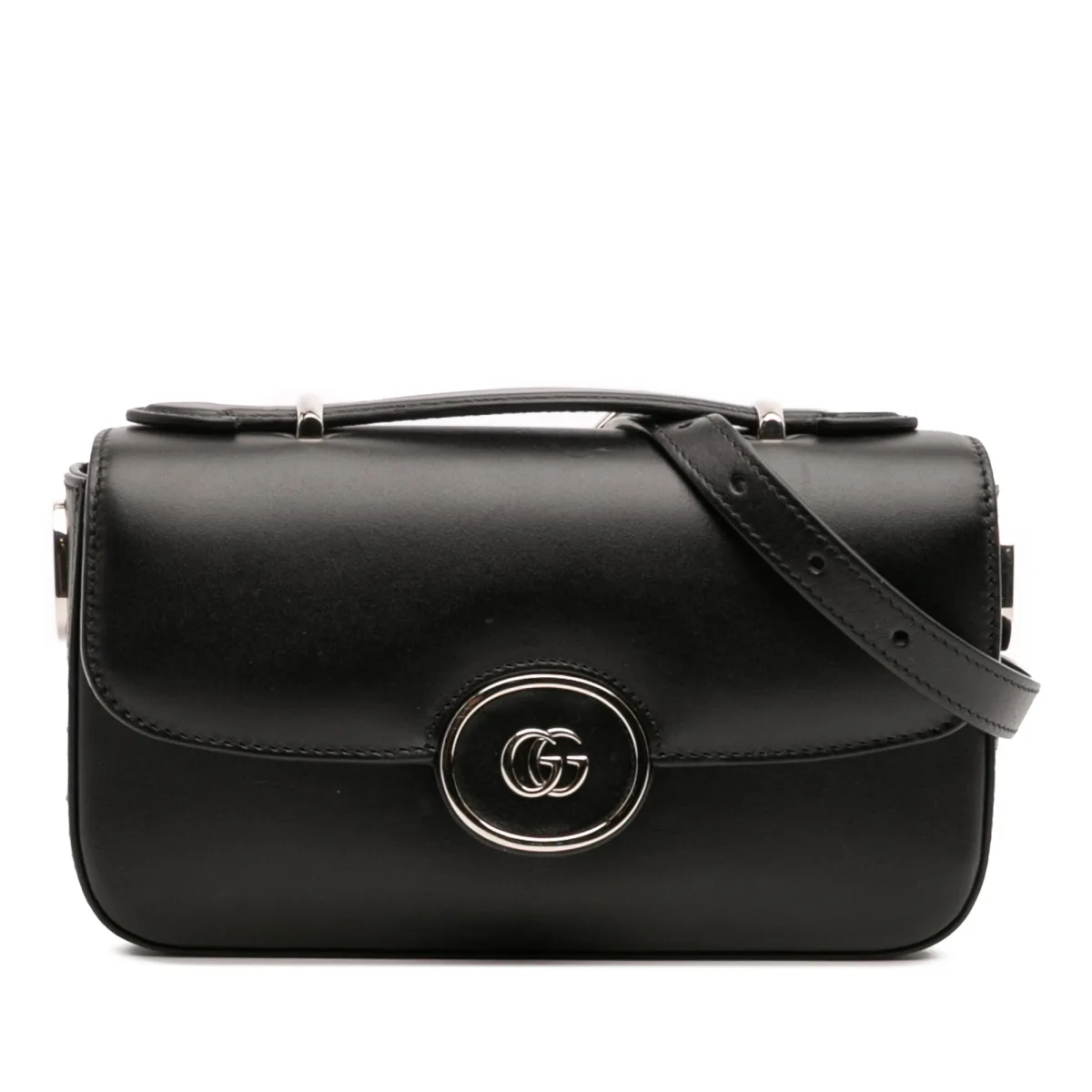 Draag moeiteloos, reis stijlvol en verover je dag. Deze petite schoudertas biedt handsfree gebruiksgemak zonder in te boeten op elegantie. Het klassieke zwarte leer, verfraaid met een zilverkleurig GG-logo, verheft elke outfit. Geniet van een veilige, verstelbare pasvorm met de schouderriem. Het duurzame, onderhoudsarme leer zorgt voor blijvende schoonheid. Perfect voor dagelijkse avonturen of weekenduitstapjes, deze tas verweeft moeiteloos mode en functie in je levensstijl. Afmetingen: 12 x 21 x 5 cm Conditiebeoordeling: B+ Informatie over de conditie: Achterkant buitenkant krassen. Achterkant buitenkant verontreinigd met andere. Onderkant buitenkant krassen. Sluiting krassen. Versiering krassen. Voorkant buitenkant krassen. Voorkant buitenkant verontreinigd met andere. Binnenvoering krassen. Binnenvoering verontreinigd met andere. Praktische bevestiging krassen. Zijrand buitenkant krassen. Bovenkant buitenkant verontreinigd met andere. Rits krassen.