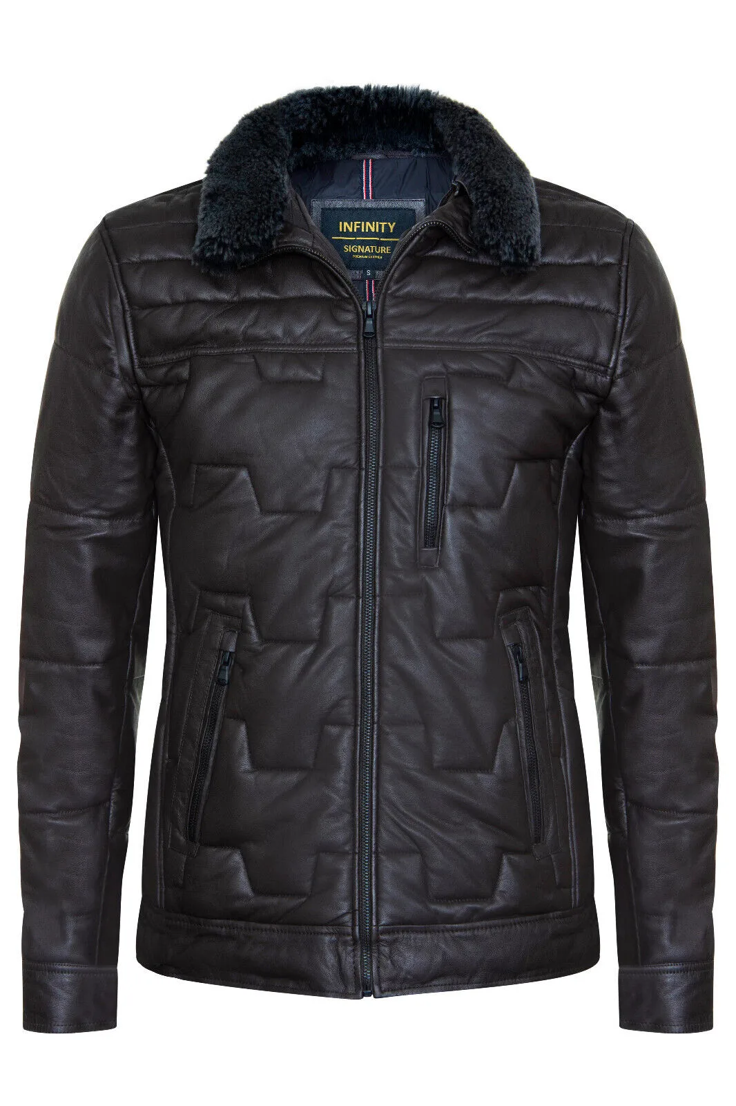 Introductie van onze langverwachte Infinity Signature Range, die twee jaar meedogenloze toewijding aan vakmanschap en innovatie vertegenwoordigt. Ons nieuwste meesterwerk, het opvallende leren jack, heeft een royale gewatteerde vulling, waardoor het een opvallend kledingstuk is voor omgevingen met koud weer. Gemaakt van heerlijk zacht schapennappaleer en voorzien van synthetische donsvulling, zorgt het voor uitzonderlijke warmte en comfort. De verwijderbare voering van de kraag van imitatiebont biedt veelzijdigheid in styling, terwijl de stevige UMZ-ritssluiting die doorloopt in een opstaande kraag voor duurzaamheid en verfijning zorgt. Met strategisch geplaatste zakken, waaronder een verticale borstzak met ritssluiting en twee handwarmerzakken, gaat functionaliteit moeiteloos samen met stijl. Binnenin onthult het volledig met nylon gevoerde interieur drie met leer afgewerkte vakken voor extra gemak en organisatie, wat onze onwrikbare toewijding aan luxe en functionaliteit laat zien. Belangrijkste ontwerpkenmerken: Toegewijd vakmanschap en innovatie: Twee jaar meedogenloze toewijding aan vakmanschap en innovatie zijn besteed aan het creëren van dit meesterwerk. Constructie van premium schapennappaleer met synthetische donsvulling: zorgt voor uitzonderlijke warmte en comfort. Veelzijdige uitneembare kraagvoering van imitatiebont: biedt flexibiliteit in styling. Duurzame UMZ-ritssluiting en strategisch geplaatste zakken: bieden gemak en stijl. Luxe, met nylon gevoerde binnenkant met met leer afgewerkte zakken: voegt gemak en organisatie toe en toont onze toewijding aan luxe en functionaliteit