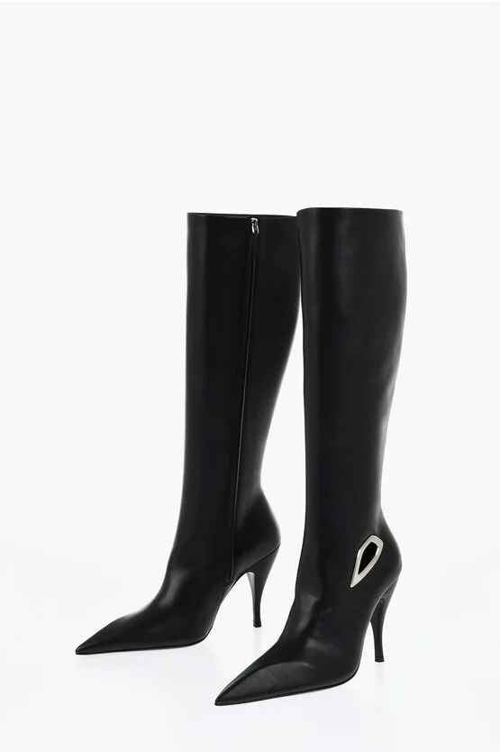 Leren hoge laarzen met uitsparingen, hak 11 cm in zwart Prijzen