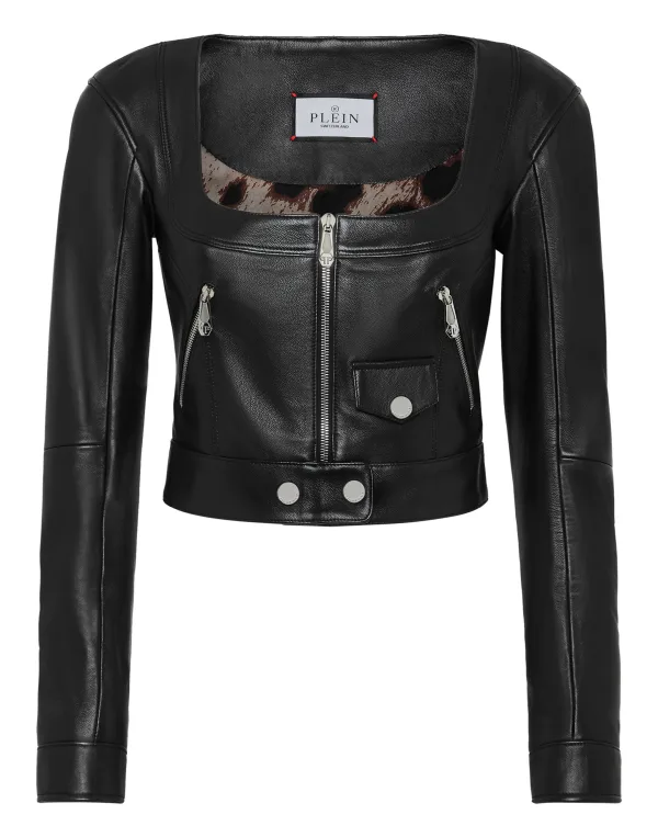 Geef je look een gothic-rock tintje met dit unieke jasje van zacht nappa. Nappa Vierkante hals Metalen ritssluiting aan de voorzijde, manchetten en zakken Metalen drukknopen met logo Voering van gemêleerde stof