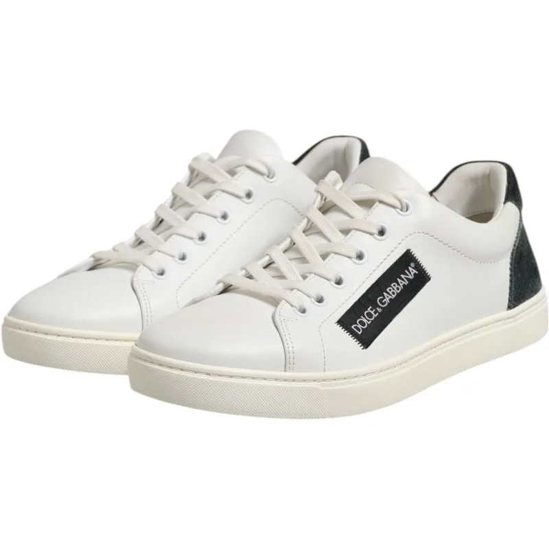 Stap uit, val op en loop met vertrouwen. Deze Dolce & Gabbana leren lage sneakers tillen je dagelijkse stijl naar een hoger niveau. Geniet van een klassiek vetersluitingontwerp dat zorgt voor een veilige pasvorm. Het subtiele logopatch voegt een vleugje verfijnde luxe toe. Gemaakt van kwaliteitsleer, bieden deze sneakers duurzame, onderhoudsarme draagbaarheid. Ervaar de technologie voor comfort de hele dag, wat ze ideaal maakt voor drukke dagen. De stevige constructie biedt langdurige ondersteuning. Perfect om een verfijnde touch toe te voegen aan casual outfits, integreren deze sneakers naadloos in je moderne levensstijl. Maak ze schoon met een zachte, dampige doek om ze er op hun best uit te laten zien.
