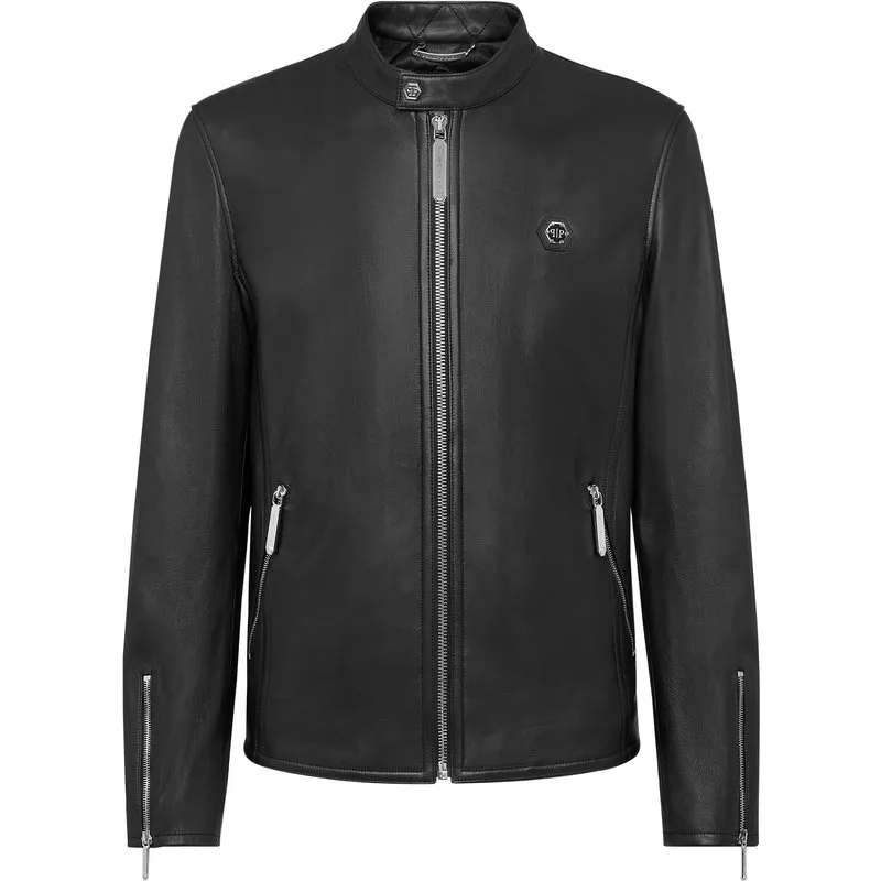 Zacht bikerjack van nappa. Kraag met drukknoopsluiting. Een saffiaanleren patch met de PP Hexagon is opgenaaid op de linkerborst. Ritssluiting en manchetten met rits. Twee steekzakken met blinde knoopsluiting. Voering van matelassé stof.