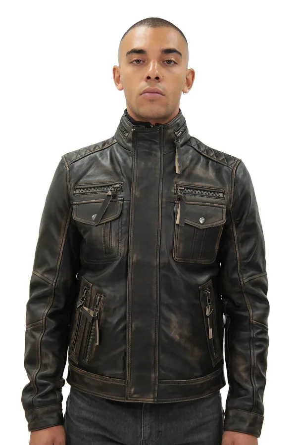 Leren retro bikerjack voor heren, Toronto Prijzen