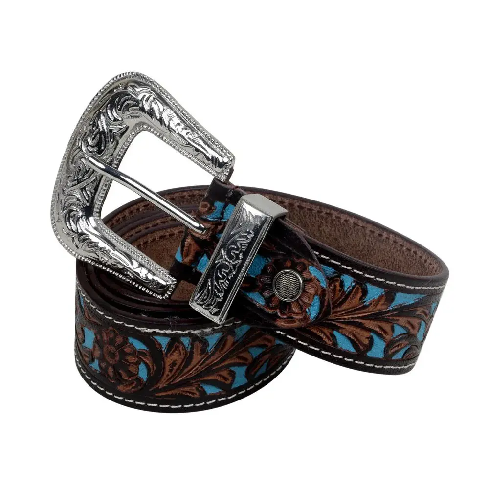 Leren riem voor vrouwen Myra Bag Turquoise Hand-Tooled