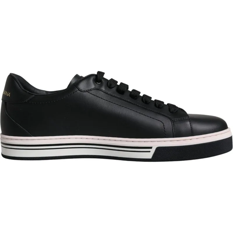 Stap naar buiten, val op en beheers de straten. Ervaar ongeëvenaard stijl met deze leren sneakers van Dolce & Gabbana. Het klassieke lage ontwerp voegt een vleugje luxe toe aan je dagelijkse look. Geniet van grondgebonden stabiliteit met elke stap, dankzij de platte hak. De ruime, natuurlijke pasvorm van de ronde neus zorgt de hele dag door voor comfort. De duurzame, onderhoudsarme leren constructie houdt je er scherp uitziend uit, keer op keer. Perfect om een verfijnde rand toe te voegen aan casual outfits, deze sneakers zijn jouw perfecte keuze voor moeiteloze stijl.