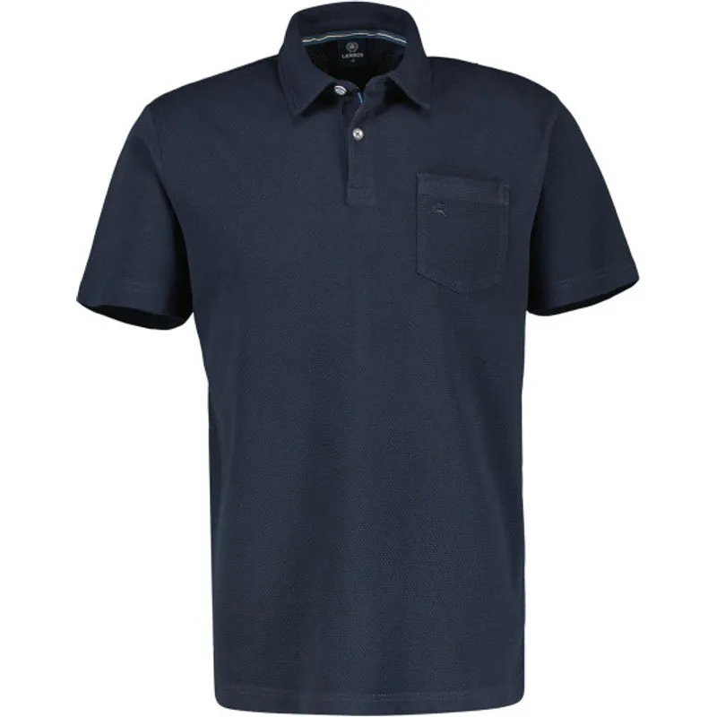 Polo in een mooie zachte wafelpique van het mannenmode merk LERROS. Dit effen korte mouw poloshirt heeft een mooie regular fit pasvorm. Regular fit 100% Katoen