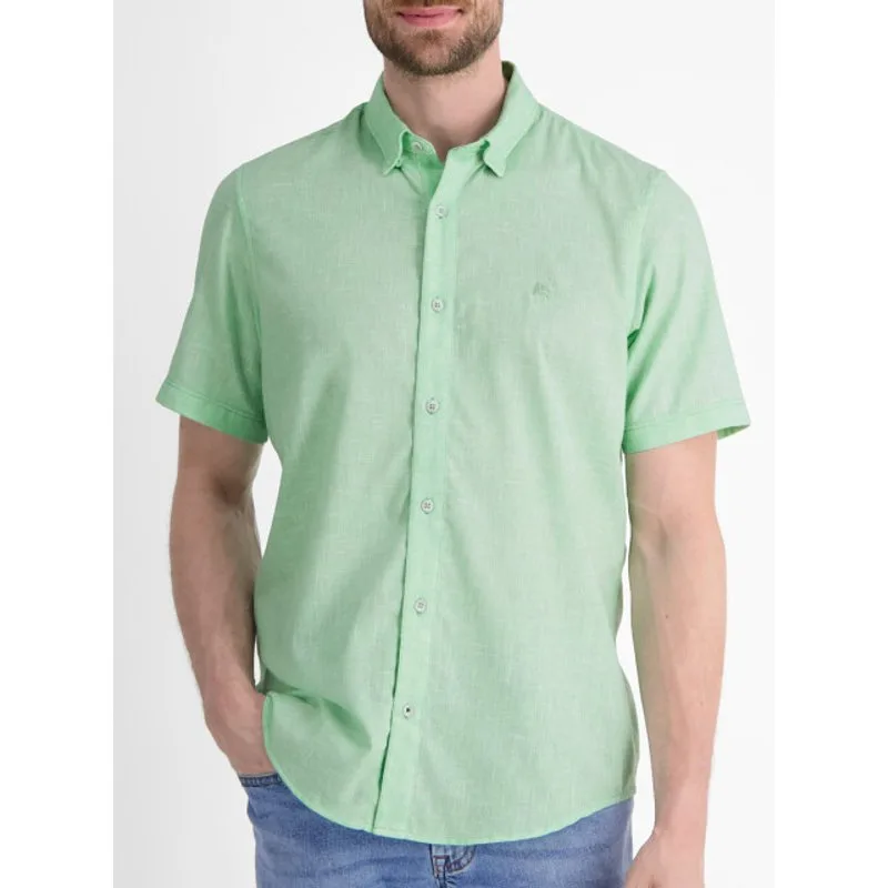 Effen gemeleerd heren shirt met korte mouwen van LERROS. Dit overhemd heeft een button-under kraag. Regular fit 60% Polyester/ 40% Katoen