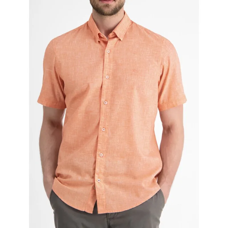 Effen gemeleerd heren shirt met korte mouwen van LERROS. Dit overhemd heeft een button-under kraag. Regular fit 60% Polyester/ 40% Katoen
