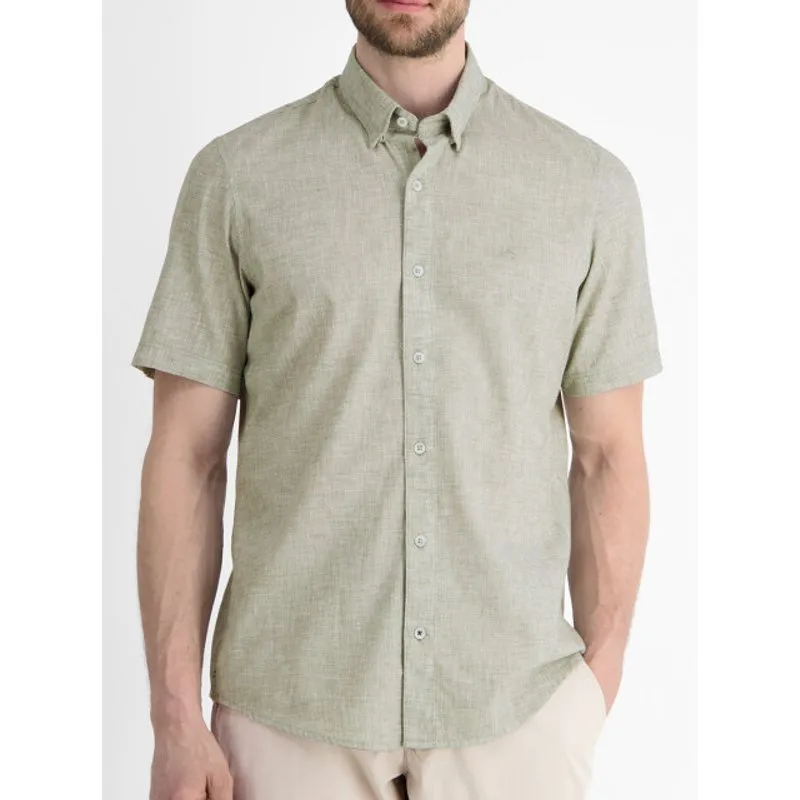 Effen gemeleerd heren shirt met korte mouwen van LERROS. Dit overhemd heeft een button-under kraag. Regular fit 60% Polyester/ 40% Katoen