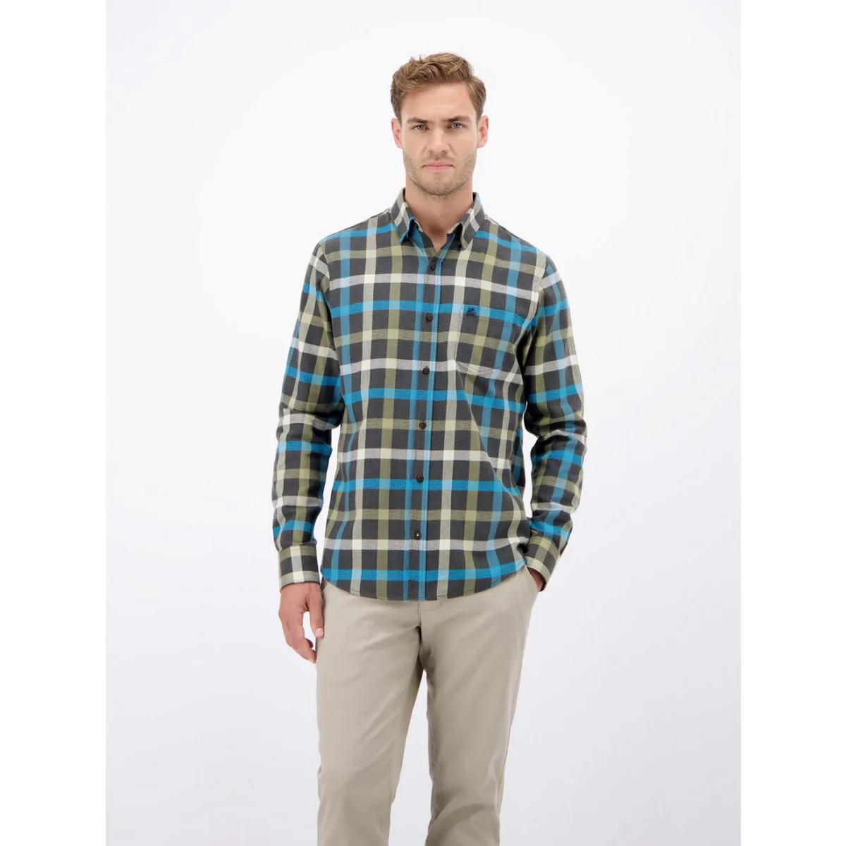 Flanellen heren overhemd van LERROS met een ruit dessin. Regular fit Borstzakje 100% Katoen Kleurnummer: