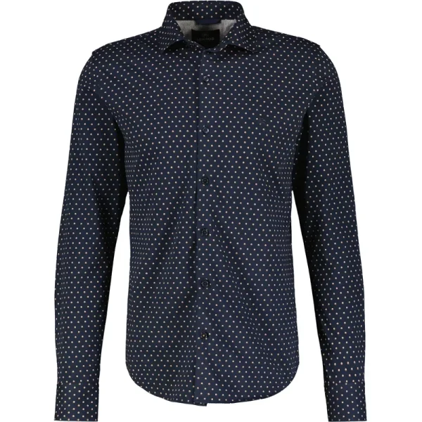 Dit donkerblauwe heren overhemd van Lerros heeft op de borst het welbekende logo van Lerros. Dit overhemd voor heren van Lerros is voorzien van een vrolijke all-over print. Dit overhemd is gemaakt van 100% katoen.