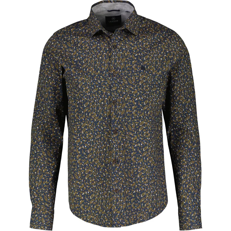 Dit donkerblauwe heren overhemd van Lerros heeft op de borst het welbekende logo van Lerros. Dit overhemd voor heren van Lerros is voorzien van een subtiele all-over print. Dit overhemd is gemaakt van 97% katoen en 3% elastaan.