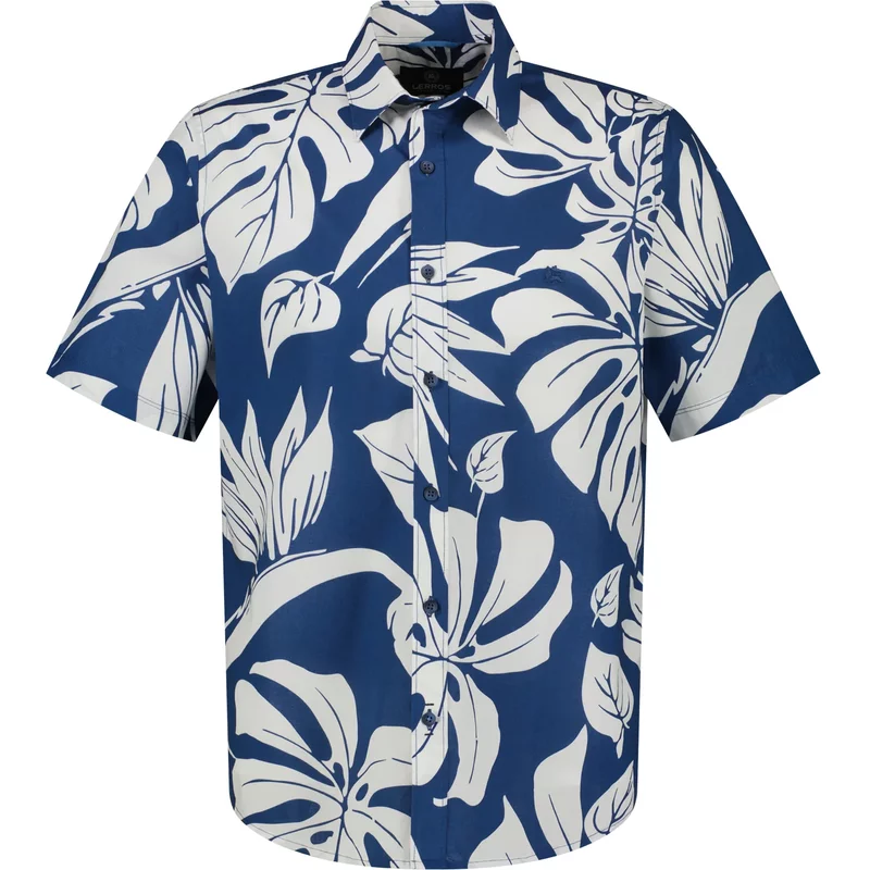 Ontdek het comfort van het blauwe herenoverhemd met korte mouwen en een zomerse all over print van Lerros. Gemaakt van 100% katoen, biedt dit overhemd de perfecte mix van stijl en ademend vermogen voor warmere dagen.