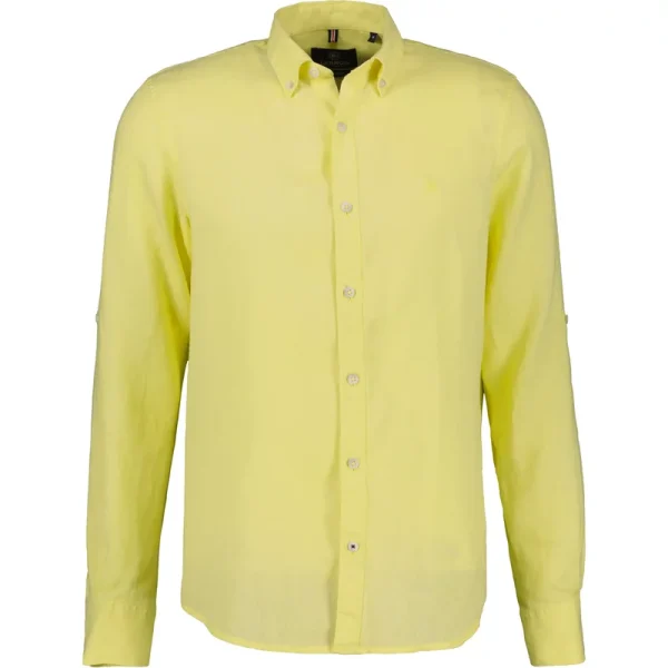 Het gele heren overhemd van Lerros heeft lange mouwen. Dit overhemd is lekker licht van stof en draagt super fijn in de zomer. Deze blouse is gemaakt van 55% linnen en 45% katoen.