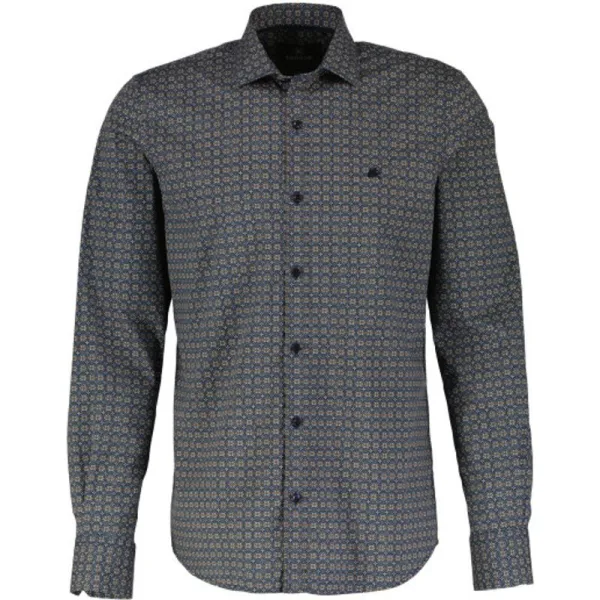 Overhemd van Lerros met lange mouwen en een verborgen button down kraag. Dit duurzame model heeft een allover print en sluit met knopen.Extra details Knoopsluiting Sportieve button/down kraag Lange mouwen. 2knoops manchetMateriaal:100% KatoenWasvoorschrift:Machinewas max. Fijnwas 30 graden Celsius. Niet in droger