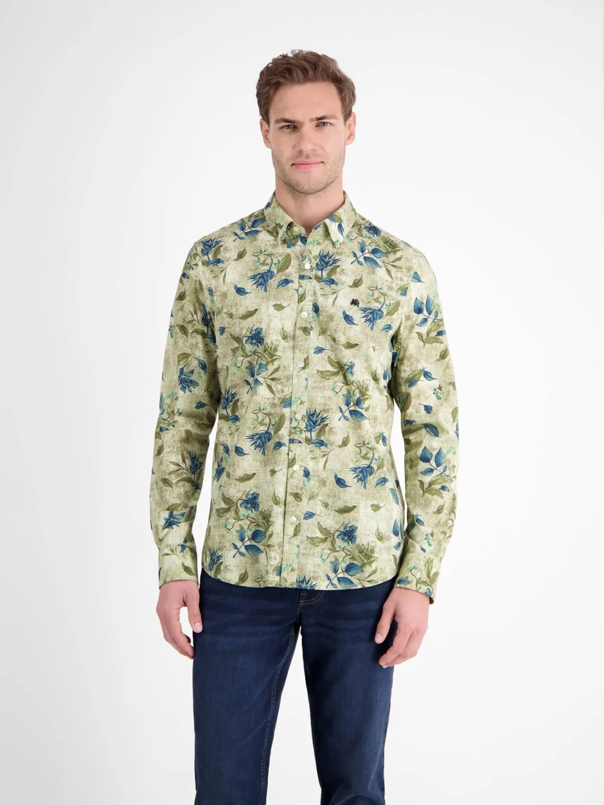 Gebloemd overhemd van het merk LERROS met lange mouwen. Regular fit 97% Katoen/ 3%Elasthan Kleurnummer: 108