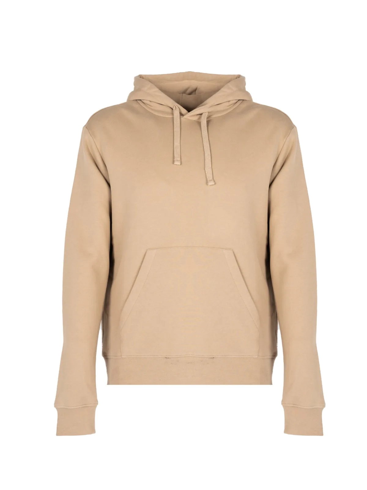 De klassieke, eenvoudige snit maakt de trui zeer veelzijdig en geschikt voor verschillende outfits, zowel alledaags als sportief, zodat je er altijd modieus uitziet en je comfortabel voelt. De capuchon met trekkoord biedt extra bescherming tegen wind en regen en geeft de trui ook een sportief karakter, zodat hij kan worden aangepast aan je persoonlijke behoeften en voorkeuren. De praktische, gecombineerde zak aan de voorkant is de ideale plek om kleine spullen in op te bergen, zoals sleutels, telefoon of portemonnee, en biedt ook een uitstekende oplossing om je handen warm te houden op koudere dagen. De manchetten aan de mouwen en de zoom zorgen voor een perfecte pasvorm en comfort, zodat er geen koude lucht binnenkomt en de warmte in de trui blijft. Op de linkermouw zit een discreet eigen detail dat de trui een uniek karakter geeft en de hoge kwaliteit en aandacht voor detail benadrukt. De trui is gemaakt van hoogwaardige stof, wat zorgt voor duurzaamheid, zachtheid en comfort, en waardoor hij gemakkelijk te onderhouden is en lang zijn oorspronkelijke uiterlijk behoudt.