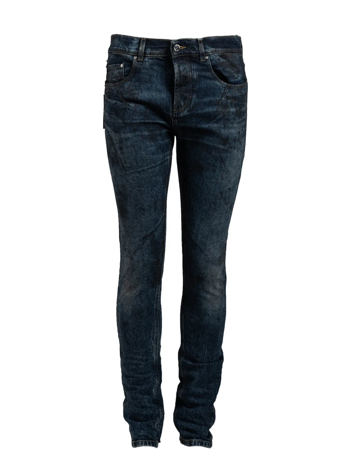 Getailleerde snit (slim fit) Middelhoge taille (Mid Waist) Sluit met knopen Aansluitende, smalle broekspijpen Drie zakken voor, twee achter Merkdetail op de achterzak rechts Versierd met slijtagedetails Gemaakt van hoogwaardig denim Gemaakt in Italië