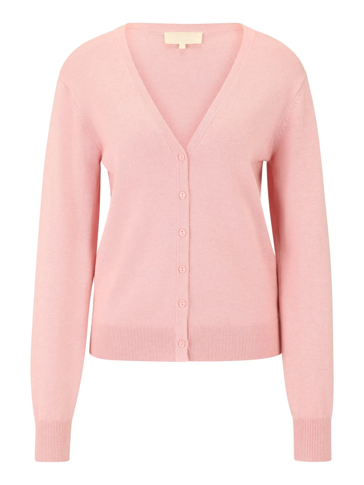 Design: Geribd ceintuurtje; Type sluiting: Knoopsluiting; Materiaal: Knitwear; Halstype: V-hals; Motief: Effen; Extra's: Label patch/label flag, Voelt zacht aan; Pasvorm: Normale pasvorm; Armlengte: Lange mouw; Lengte: Normale lengte