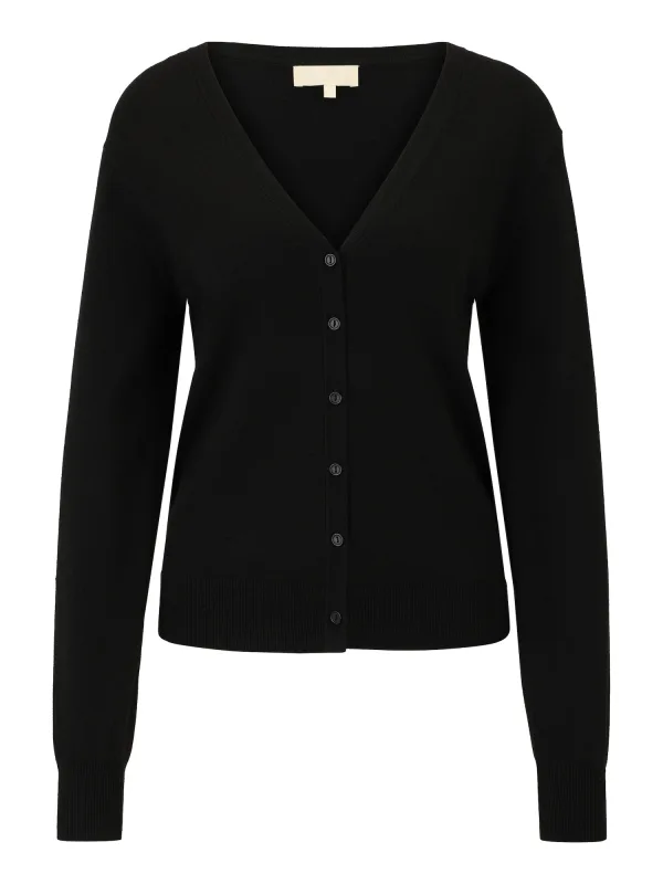 Design: Geribd ceintuurtje; Type sluiting: Knoopsluiting; Materiaal: Knitwear; Halstype: V-hals; Motief: Effen; Extra's: Label patch/label flag, Voelt zacht aan; Pasvorm: Normale pasvorm; Armlengte: Lange mouw; Lengte: Normale lengte