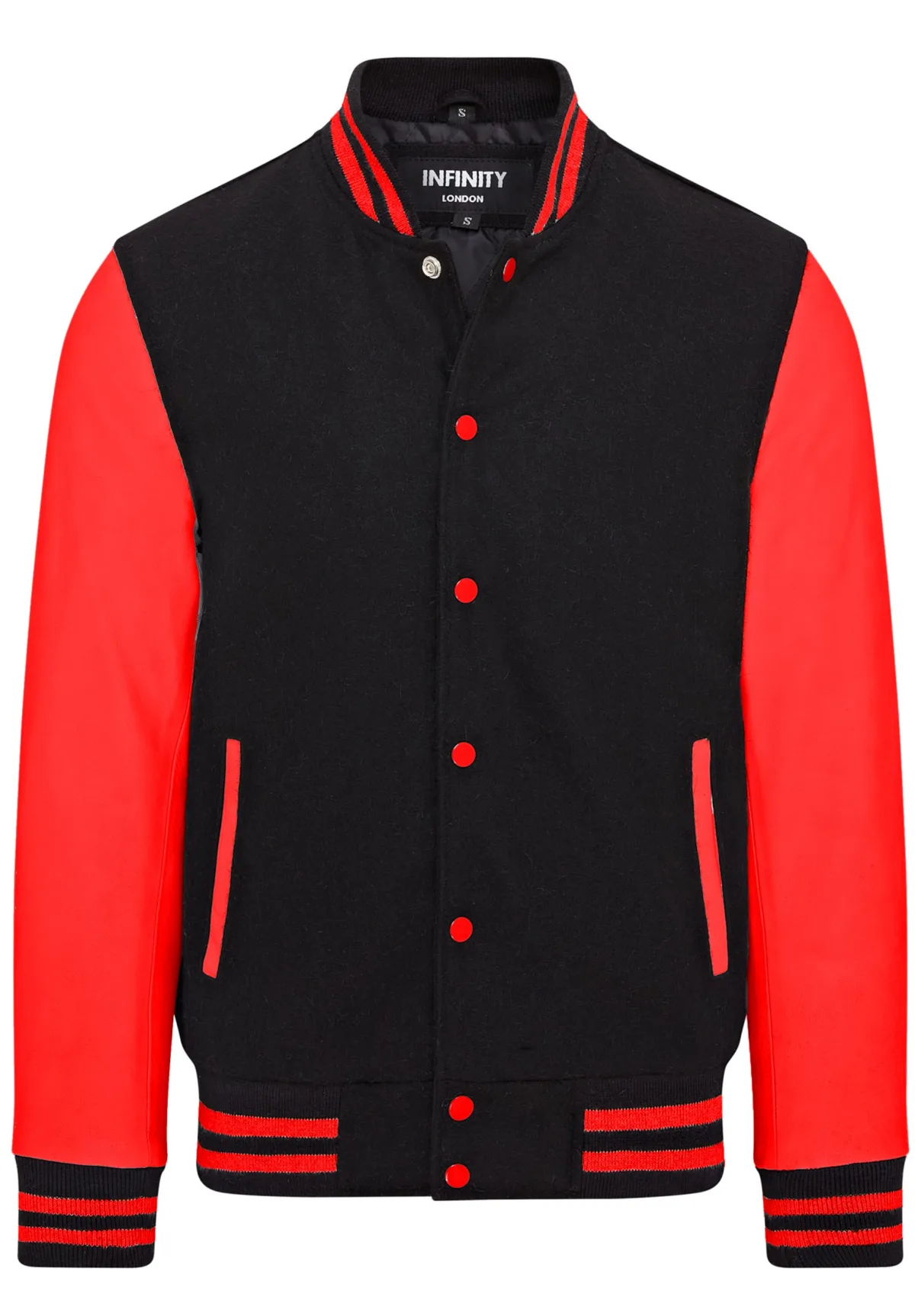 Letterman Baseball Zwart Rood Wollen Leren Varsity Bomberjack – Genua Prijzen